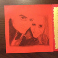 Tout simple : une carte pré pliée en 2, une feuille dorée, des ciseaux cranteurs, des strass autocollants, et de la colle. Le dessin à l'intérieur je l'ai fait en 2007 d'après une photo de nous à...