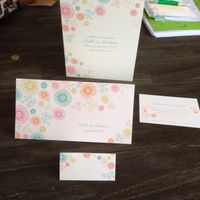 J ai essayé d assortir les faires parts et le thème floral. J adore ce côté multi couleurs. Le plan de table sera sous forme d arbre, sur lequel nous accrocherons un petit carton par table avec les...