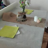 Mon essai deco de table n ayant pas trouvé mon chemin de table en jute on fais avec les moyens du bord pour tester le mariage des tissus hihi on a décidé d ajouter une touche de couleur dans le vase...