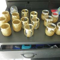 Coucou tout le monde Enfin mes 15 pots "Or" sont finis bon j'ai encore les argents à faire............ Il m'a fallu environ 5 jours (je suis pas rapide lol) mais entre la mise en place du scotch, le...