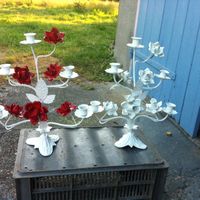 Voilà 2 chandeliers... On les a repeints en blancs mais ils sont des roses et on a voulu faire l essai sur un de peindre les roses en rouge.. Nos couleurs de mariage sont blancs et bordeaux... Vous en...