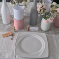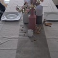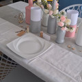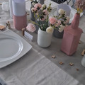 Bonjour les FM, Avec mon futur mari nous avons fais une table test. Sachant que nous aurons une nappe blanche, un chemin de table rose poudré et un beau bouquet de fleur au centre. Qu’en pensez vous ?...