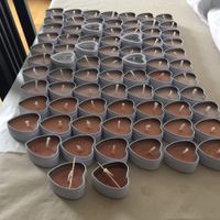 Voici nos bougies de massage maison pour les invités en plus des dragée ils nous reste juste les savons maison pour les enfants elle aurons toute les meme couleur après le séchage