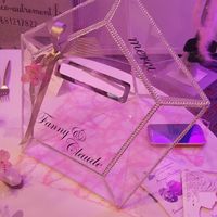 Hello les filles. Nous avons enfin trouvé notre urne pour le grand jour. Elle est en forme de diamant et elle sera bien sûr personnalisée avec nos prénoms et aux couleurs du mariage donc un ruban rose...