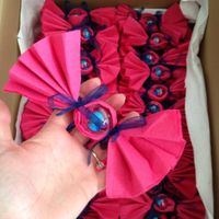Coucou voilà les serviettes qui seront dan les assiettesMaman a eu l'idée Ma mamie les a réalisés A l'intérieur de la petite boule ceux sont des mms personnalisés que ma future belle mère nous a...