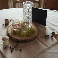Je viens de faire un 1er essai de deco de table. Alors il manque encore le rondin de bois en dessous, sinon je trouve ça pas trop mal mais peut être un peu fade. Alors si vous avez des idées je suis...