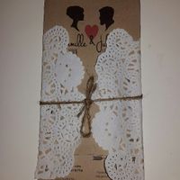 Bonsoir,Voici nos faire-parts. Nous avons piqué les idées de droit à gauche. Nous avons trouvé les dessins sur internet et nous avons collé les dentelles et rubans en satin à la maison. Petit clin...