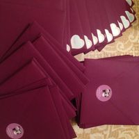 Faire parts terminés et enveloppes fermées !!! Un premier tas est parti et j'ai déjà des retours !!! Bon je me risquais pas trop avec la famille proche qui est à fond !!! Vivement que les suivants le...