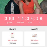 Coucou les futures mariées, je repense à mon compteur qui indiquait lors de mon inscription sur le site près de 170 jours et aux compteurs des autres mariées qui étaient à un chiffre voila que c'est à...