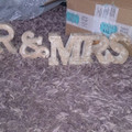 Mes pancartes de chaises et la guirlande de fleurs.Ensuite le mr et mrs en bois.Puis mon stylo en bois pour livre d'or avec nos initiale.Mes petits bonbons mr et mrs et just married aux couleurs du...