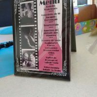 Voilà voilà.. Mes menu enfin terminé. Sur le thème donc du cinéma. Petit montage photo avec amour et j'ai mit un film plastique pour que mes invités ne salive pas trop dessus.. Lol..