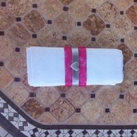 Voici les ronds de serviette fait par ma maman. Vous l'aurez compris Fushia pour les femmes et Gris pour les hommes. Ils sont simples mais rendent bien. Comme quoi avec un morceau de tissus, un autre...