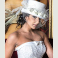 Voila avec ma robe blanche je souhaiterais porter ce chapeau (pour garder le vrai voile à la cérémonie laïque mais en boléro je n'arrive pas a me décider lequel irait mieux avec ma robe et le chapeau...