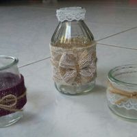 Coucou à toutes !!! Je prévois de mettre des photophores ( recyclage des fameux pots de yaourts )Mon thème étant champêtre, vintage ... et touche de violet ... Et pour le candy bar je recycle les pots...