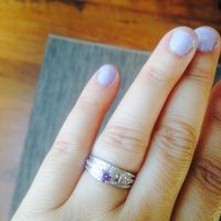 Coucou Voici nos alliances avec ma bague de fiançaille (que je n'ai plus le droit de porter jusqu'au mariage car elle a été nettoyé pour avoir la même brillance que l'alliance). Je les ai mises...