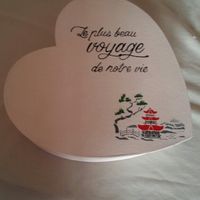 Voilà ce que j'ai commencé ce jour, il ne me reste plus qu'à inscrire la date (quand on aura confirmé la mairie), poser un ruban de satin sur le pourtour et coller une orchidée au creux du coeur....