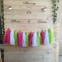 Bonjour bonjour Et voila apres un premier essai qui n etait finalement pas cohérent avec le reste de la table on est resté dans nos couleurs et matiere. Du rose du jute de la dentelle une pointe de...