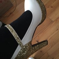 J'ai trouvé des chaussures rouges pas trop hautes pour ne pas dépasser chéri...Vous en pensez quoi?J'aime pas trop quand on voit le début des orteils ...Le liseré est argenté! Correspondant tout à...