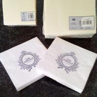 Le dernier colis arrivé, ce samedi, contente et très amusant ^^ Nos serviettes Avec les petites pour les desserts, les grandes, le repas et les 'just married' pour le vh J'attendrais juillet pour le...