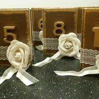 BonjourVoici ce que je metterais sur les tables.je suus trop content de moi et de mon papa qui m' aidé.mon theme est vintage( toile de jute et dentelle)