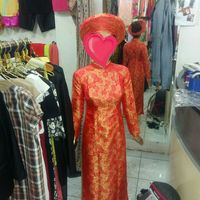 Faite sur mesure au pays . Ma robe traditionnelle vietnamienne pour la cérémonie religieuse chez les parents..