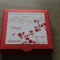 Bonjour à tous et à toutes! Nous avons enfin fait nos faire parts sur le thème du puzzle et des couleurs rouge et blanc. Dites moi ce que vous en pensez! boite faire part La phrase dans le haut : "La...