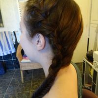 Hello les filles ! Voilà les photos de mon essai réalisé ce matin ! Le jour J j'aurai des extensions pour avoir une tresse plus longue et de la laque pailletée, mais ça donne déjà une bonne idée....