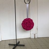 Bonjour, suite à mon dernier post, où j'expliquais ce que je voulais faire avec des boules de fleurs, à l'entrée de ma salle, mais où il me manquait le ruban pour accrocher la boule au piquet.... Et...