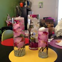 Voici la version définitive de mes centres de table, il manque juste un miroir de table à la place du set jaune !!! Trop heureuse avec chéri !!!!