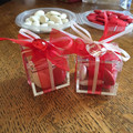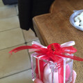 Bonsoir tous le monde. J'ai besoin de vos avis pour mes contenants à dragees.... Mon theme est amour et strass avec comme couleur rouge et blanc. J'envisage de changer les rubans selon la couleur du...