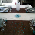 Debut DIY plan de table chocolat turquoise. Plan de table pour 150 invités.