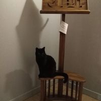 Je vous présente le Pupitre pour ma cérémonie laïque. Il s'agit d'un Pupitre fait par mon père pour mes 18 ans, avec mes initiales. Évidemment, mon chat restera à la maison, lui