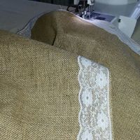 Comme.je ne trouve pas.ce que je veux ... ben je le fait!! Chemin de table en toile de jute et dentelle qu'en pensez vous? ??
