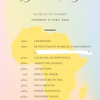 Je me suis amusé sur Canva et suis assez satisfaite de moi. Je l’enverrais à nos invités deux jours avant le mariage. Ça facilitera aussi les prestataires.