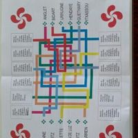Coucou tous le monde.....voici une première ébauche de mon plan de table. Vous en pensez quoi? Les croix basque en haut seront plus petite, les carrés seront en forme de maison et les noms des villes...
