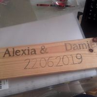 Hello, premier essai ce soir de transfert sur le bois. Je suis plutôt contente du résultat (sauf espace entre & et Damien mais j'ai oubliée de le rapprocher lol. Notre thème est champêtre vintage....