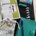 Voici mes kits témoins prêt pour être distribués : dans le sac en coton il y a : un livret, du parfait témoin, mouchoirs, schwingum, sac à chaussures, un badge personnalisé, bloc note, stylo,...