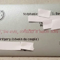 Coucou, ce soir petit essai pour le plan de table. Chaque étiquette contient le nom d'une personne et sa destination = nom de table. J'ai 100 personne a placer, seulement sur une ligne juste 7...