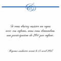 Coucou tout le monde.Nous sommes dans les faire part et on galère un peu....lol On n'arrivait pas à en trouver un et maintenant qu'on a fait notre choix, on ne sait pas comment écrire!!Je m'explique,...
