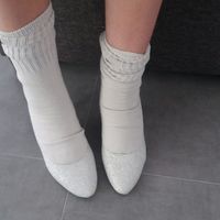 Je voulais partager ce moment délire avec vous Comme vous pouvez le voir je "fais" mes chaussures pour le mariage avec des grosses chaussettes de Mr pour les détendre et je ne me suis jamais aussi...