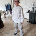 Voilà mon petit frère a quasiment toute sa tenue.. on a fait plusieurs essais. . Il a une préférence pour la deuxième photo. . Apres il voudrait un béret et des chaissures bateau.. un.peu dans le...