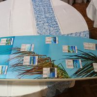 2 jours à décorer, scotcher, coller, mais aussi boire manger rire partager. A mon tour je vous fait partager notre déco de mariage sur le thème des îles et des vacances. Le rendu n'est pas parfais...