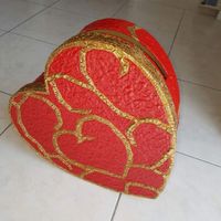 Alors j'avais demandé à mon chéri de voir avec ma mère pour faire l'urne. On avait acheté un grand coeur avec une fente pré-découpée et tout et tout, et donc chéri avait la mission de trouver quoi...