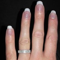 Hello Voici mon essai manucure avec mon alliance Je rappel mon thème blanc/gris et diamants Vos avis