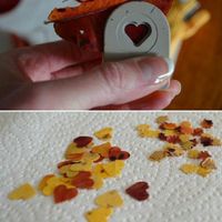 Je pensais au lieu du riz ou des pétales de roses, que les invités jettent des petits coeurs en papier découpé sur les chutes des faire part que je réaliserais pour mon thème de la plage romantique...