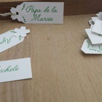 Hello les filles! Sous un temps pluvieux, je confectionne les étiquettes (marques places)de nos invités. J'en suis contente! 😆😆 Comme quoi la pluie peut être très inspirante! 😅