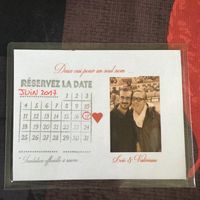 Coucou tout le monde ! Je voulais vous montrer les save the date que nous avons réalisé avec chéri. C'est du 100% maison, ils sont aimantés et tiennent bien sûr le frigo Qu'en pensez vous ? PS : nos...
