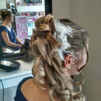 Et voilà les essais sont faits voilà ce que ça donne! Chignon sur le côté avec cheveux bouclés 😁