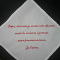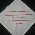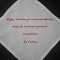Voilà j'ai enfin reçu les mouchoir brodée que je vais donner à mes parents et que mon homme donnera à ses parents ! Je vous laisse deviner lequel appartient à qui haha ! (Pas bien compliqué d'un côté...