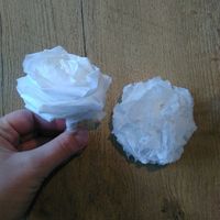 Voilà mes premières fleurs en papier. J'ai tenté ici le papier crépon à gauche et le mouchoir à droite. Sans photo, j'en ai aussi essayé en papier 80g et en plus épais. Et aussi en papier de soie....